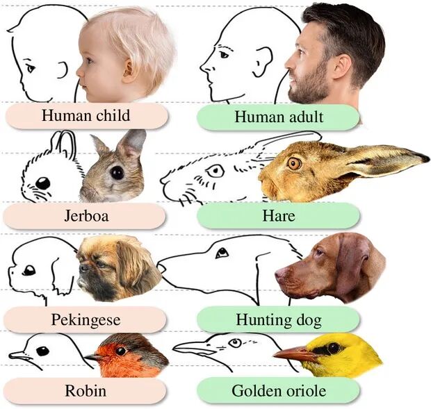 作为十分晚熟的物种,人类婴儿出生后很长时间内都需要别人的照料。八十多年前,诺贝尔奖得主、著名动物行为学家康拉德·洛伦茨(Konrad Lorenz)提出了“婴儿图式”(baby schema)的概念,这是一组婴儿面部的生理特征,包括突出的前额、位于面部下方的大眼睛、突出的脸颊以及相对身体较大的头部等。神经科学证据表明,“婴儿图式”可以激活父母或其他人的大脑相关区域,让他们被这些婴儿面部吸引,从而产生照料和养育这些婴儿的冲动。