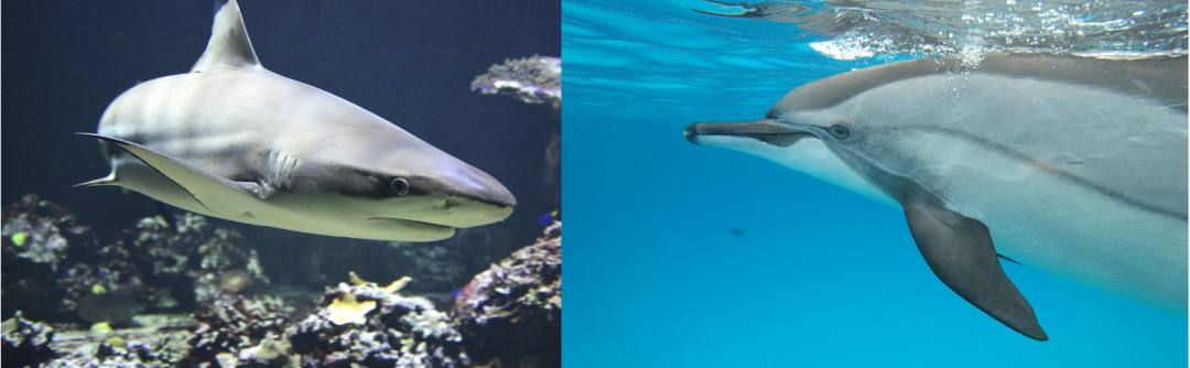 在自然界中,亲缘关系很远的物种,演化出类似特征的现象,叫做“趋同演化”(convergent evolution),这通常是因为特定的环境对不同的动物类型产生了相似的自然选择,使得它们变得相同。例如,鲨鱼属于软骨鱼类,海豚属于哺乳动物,但为了适应海洋中的生活,它们演化出了相似的身体外形。