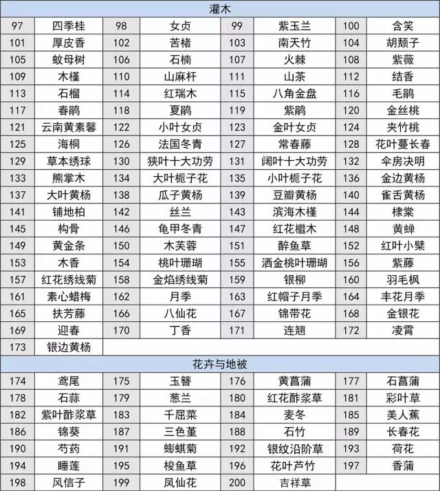 我国幅员辽阔,植物资源多种多样,在园林中应用的植物也十分丰富。本文汇集整理了200种较常见的植物,共分为常绿乔木、落叶乔木、竹类、灌木、花卉与地被共5大类,每一种植物均配有图片,并简要阐述习性。